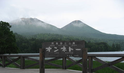 後ろの山は、雌阿寒岳(左) 阿寒富士